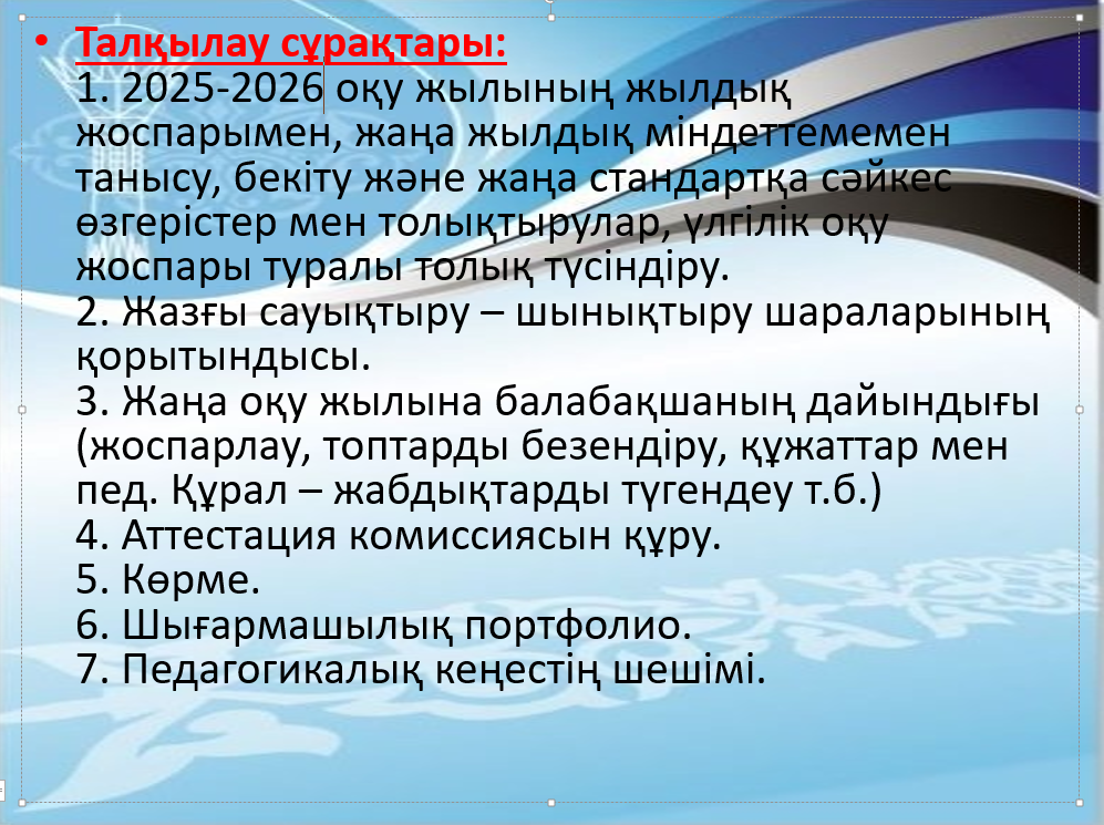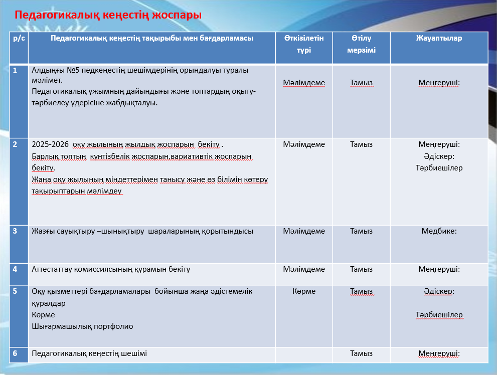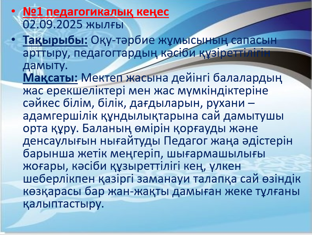 №1 Педагогикалық кеңес 2025-2026о/ж
